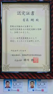 有資格者での調査になります。当社の自然災害調査士、有泉が打ち合わせに。。。